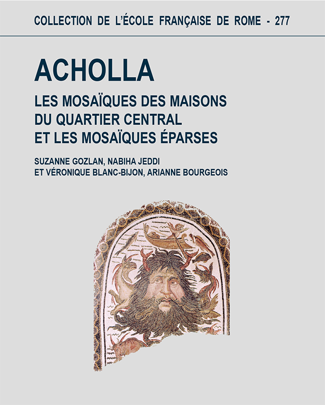 La maison du Cryptoportique a fait l’objet d’observations architecturales accompagnées d’une série de sondages ; elle a bénéficié de précieuses données fournies par le fonds Poinssot (INHA). Il a été possible d’en restituer les grandes lignes du plan et les principales étapes architecturales, notamment la mise en place d’un remarquable œcus corinthien à opus sectile, ainsi que l’installation, vers 400, d’un cryptoportique. Ici aussi, les décors, en particulier les mosaïques, ont été analysés dans le détail. Ces données et celles déjà connues ont permis de proposer une étude synthétique sur l’évolution du parcellaire et de la voirie de la Carthage romaine des origines à la fin de l’Antiquité. L’abondant matériel recueilli lors de la fouille (céramiques, monnaies, verreries, restes de faune) est ici présenté, pour chacune des deux maisons, dans son contexte stratigraphique. Parallèlement, chaque catégorie de matériel a fait l’objet de synthèses typologiques et/ou historiques de la part des différents spécialistes.