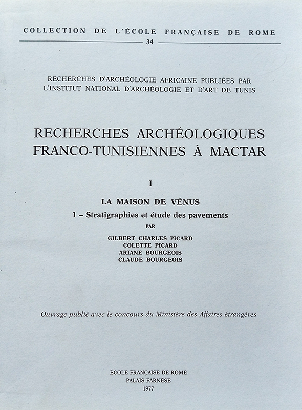 Cet ouvrage présente les pavements de deux maisons situées dans le centre urbain d’Acholla et 33 mosaïques isolées. Les maisons sont celle d’Asinius Rufinus (décorée vers 184-185) et celle des Colonnes rouges (seconde moitié du IIIe siècle).