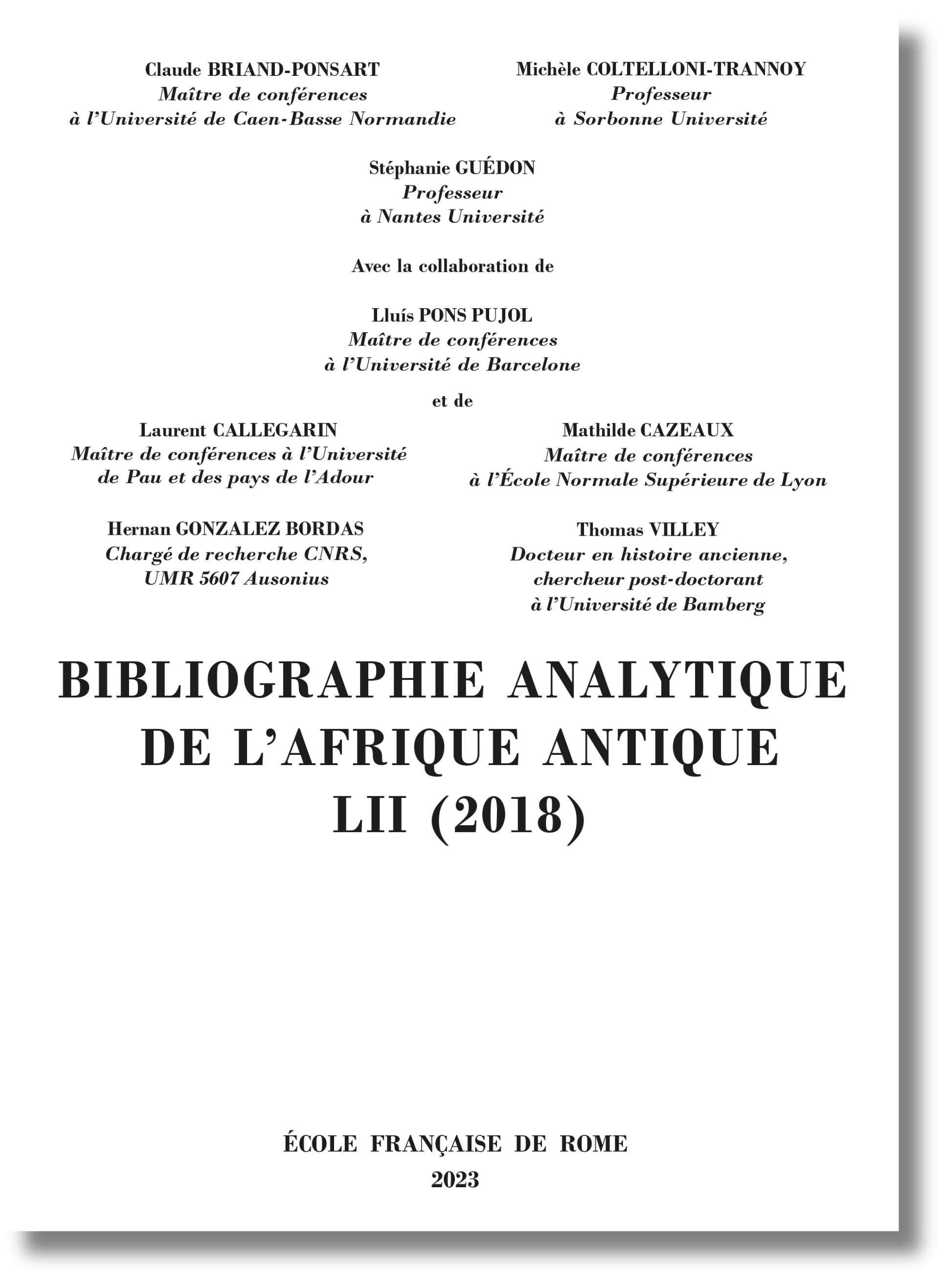 Date de parution : 22/10/2024 Bibliographie analytique de l’Afrique antique 53